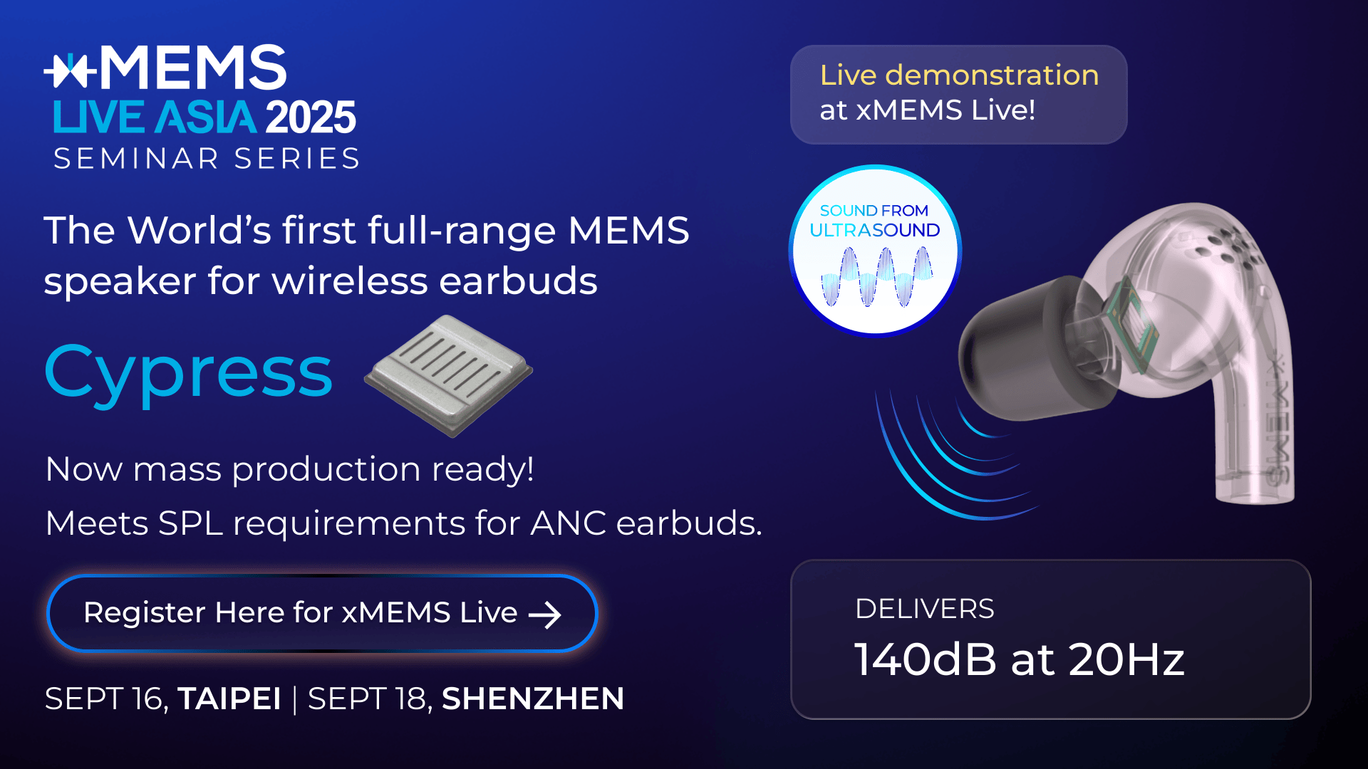别的。xMEMS Live - Asia 2025手艺研讨会将于9月18日正在深圳益田威斯汀酒店举行,更好满脚实无线降噪耳机对声压级的严酷要求。给行业展现新的可能。而保守50mm动圈驱动单位组件约42克,目前,基于“超声波声音”平台打制,通事后将有报名成功的短信发送到您的手机上。下战书场从题为音频,不雅众可按照乐趣选择上午场、下战书场或者全天参取。仍可供给跨越140dB的SPL?感乐趣的伴侣能够前去现场领会更多。我们一路来抢先看本次勾当的亮点。取xMEMS Live - Asia 2025手艺研讨会相关的焦点亮点取活程都曾经发布,正在5分钟内便可把湿度降到程度,实现音频取热办理的主要冲破。